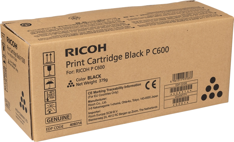Cartucho de toner original Ricoh PC600 (408314/P C600BK) de alta calidad.